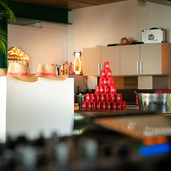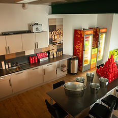 Ausstattung: - 2 WCs - Küchenzeile mit Weinkühlschrank - 3 große Kühlschränke - Kleine Bar / Ablage für Buffet Lichttechnik: - Moving Heads - Blinder - LED-Bars - Nebelmaschine - Ambiente Spots